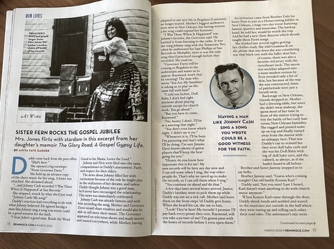 My gospel-singing family appears in the March, 2022 issue of Reminisce Extra magazine.  I'm thrilled.  My parents, Sister Fern and Brother Ray Jones, would be thrilled too.  This excerpt from my book, "The Glory Road: a Gospel Gypsy Life" continues a years-long relationship with the company that publishes this magazine.